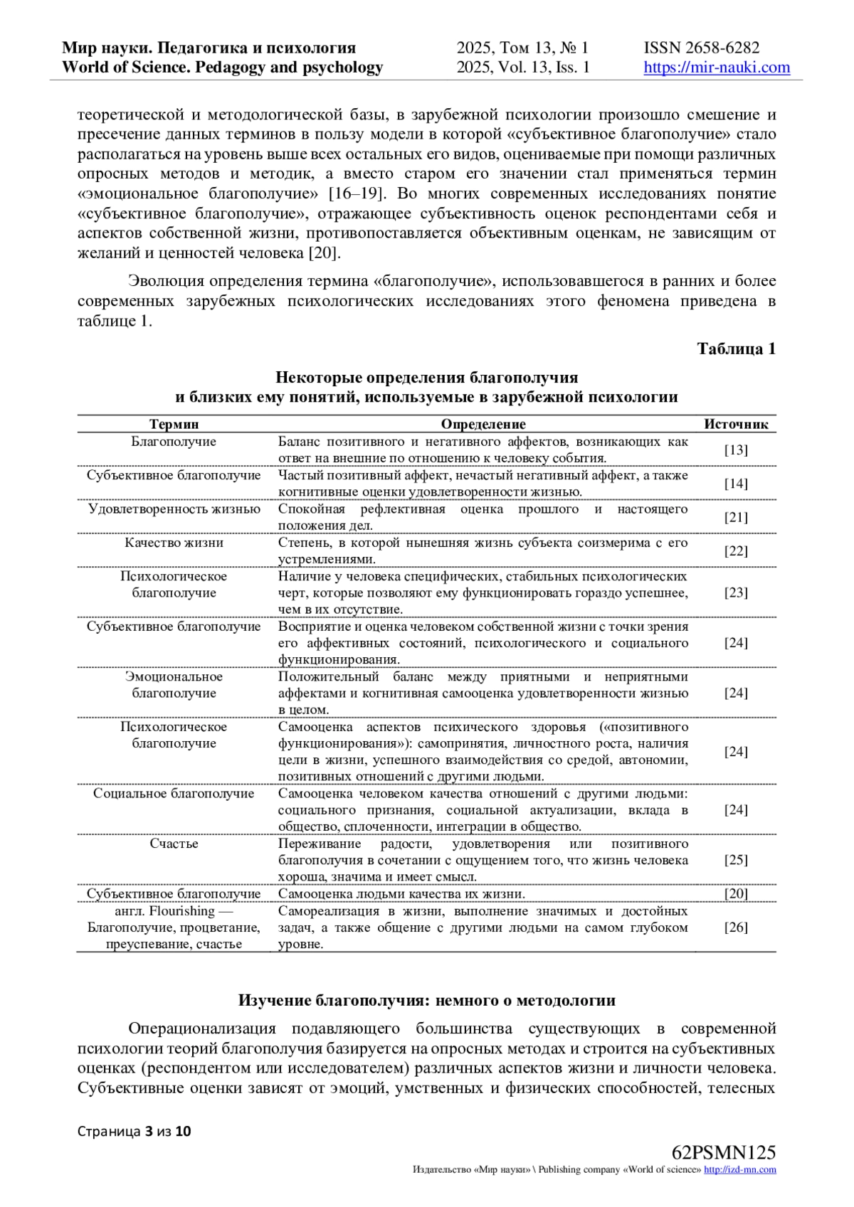 10. Панюкова Ю.Г., Панина Е.Н., Болаева Г.Б. Проблемы и перспективы исследования феномена благополучия в российской психологии // Общество: социология, психология, педагогика. 2017. Т. 12. С. 58-62. EDN: YLFQSK