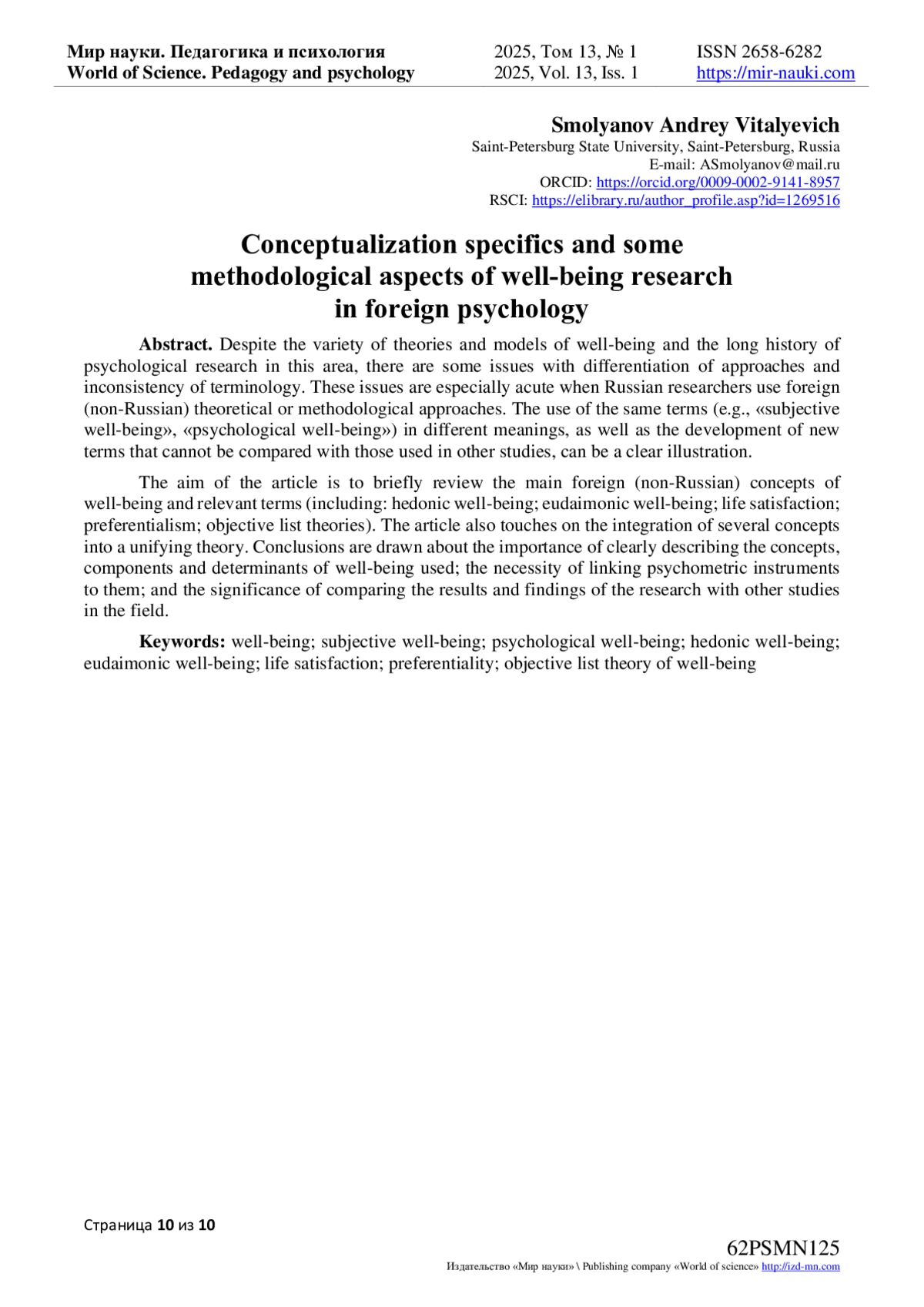 - ИЗДАТЕЛЬСТВО МИР НАУКИ