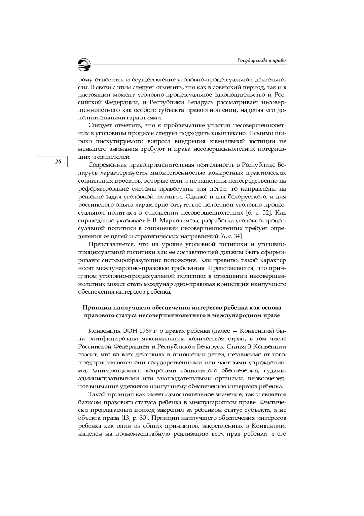 6. Марковичева Е. В. Уголовно-процессуальная политика в отношении несовершеннолетних // Сибирские уголовно-процессуальные и криминалистические чтения. 2017. № 3 (7). С. 30-35. EDN: ZWBOEN