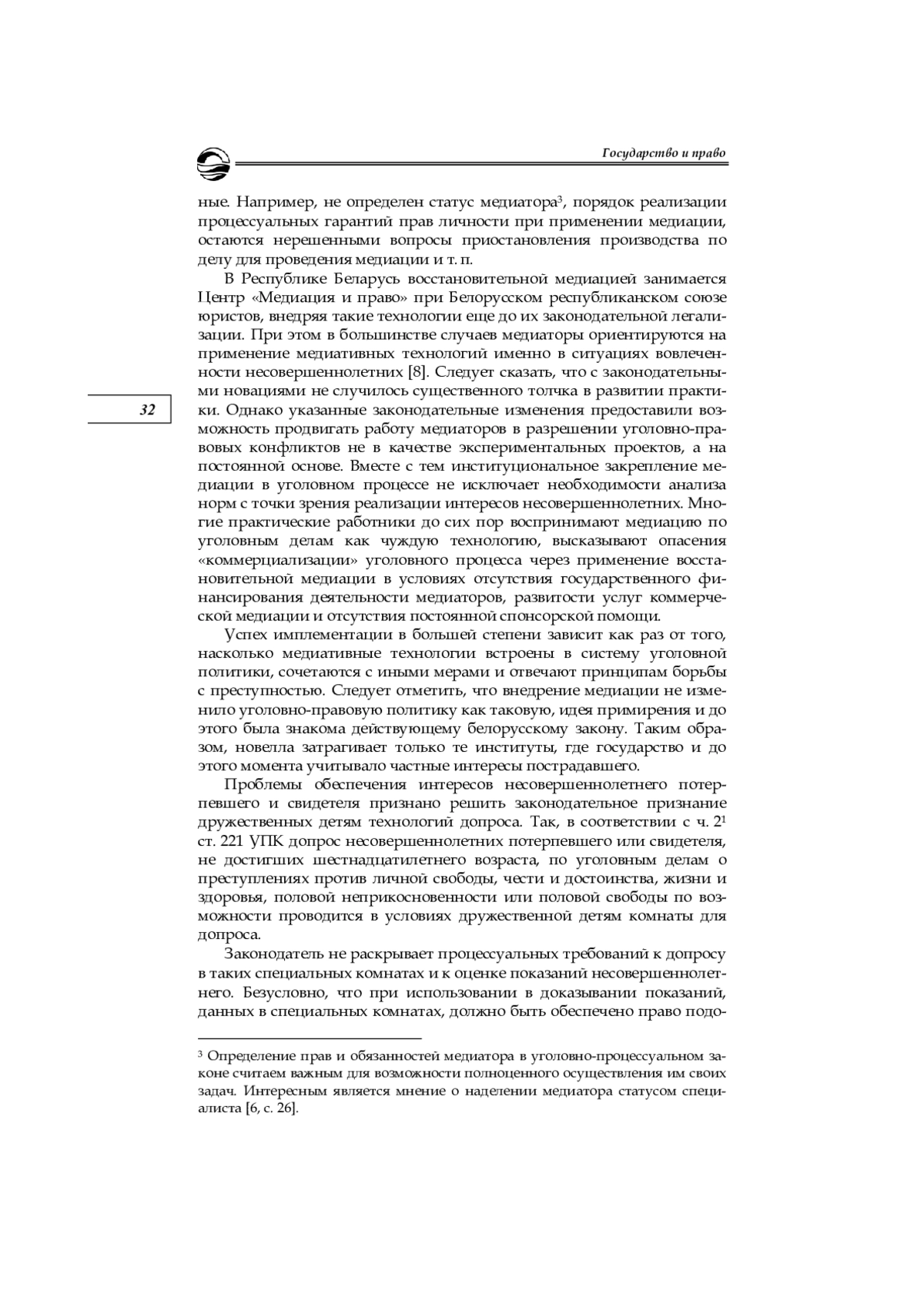 Благополучие детей — важная цель развития любого общества. Права и законные интересы ребенка подлежат охране во всех сферах жизни, в том числе при принятии юрисдикционных решений, к которому относится и осуществление уголовно-процессуальной деятельности. В связи с этим следует отметить, что как в советский период, так и в настоящий момент уголовно-процессуальное законодательство и Российской Федерации, и Республики Беларусь рассматривает несовершеннолетнего как особого субъекта правоотношений, наделяя его дополнительными гарантиями