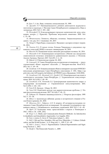 12. Евстифеев Р. В. Конструирование городских идентичностей: цели, механизмы, акторы // Праксема. Проблемы визуальной семиотики. 2020. № 4. С. 75-89. EDN: ABLBQA