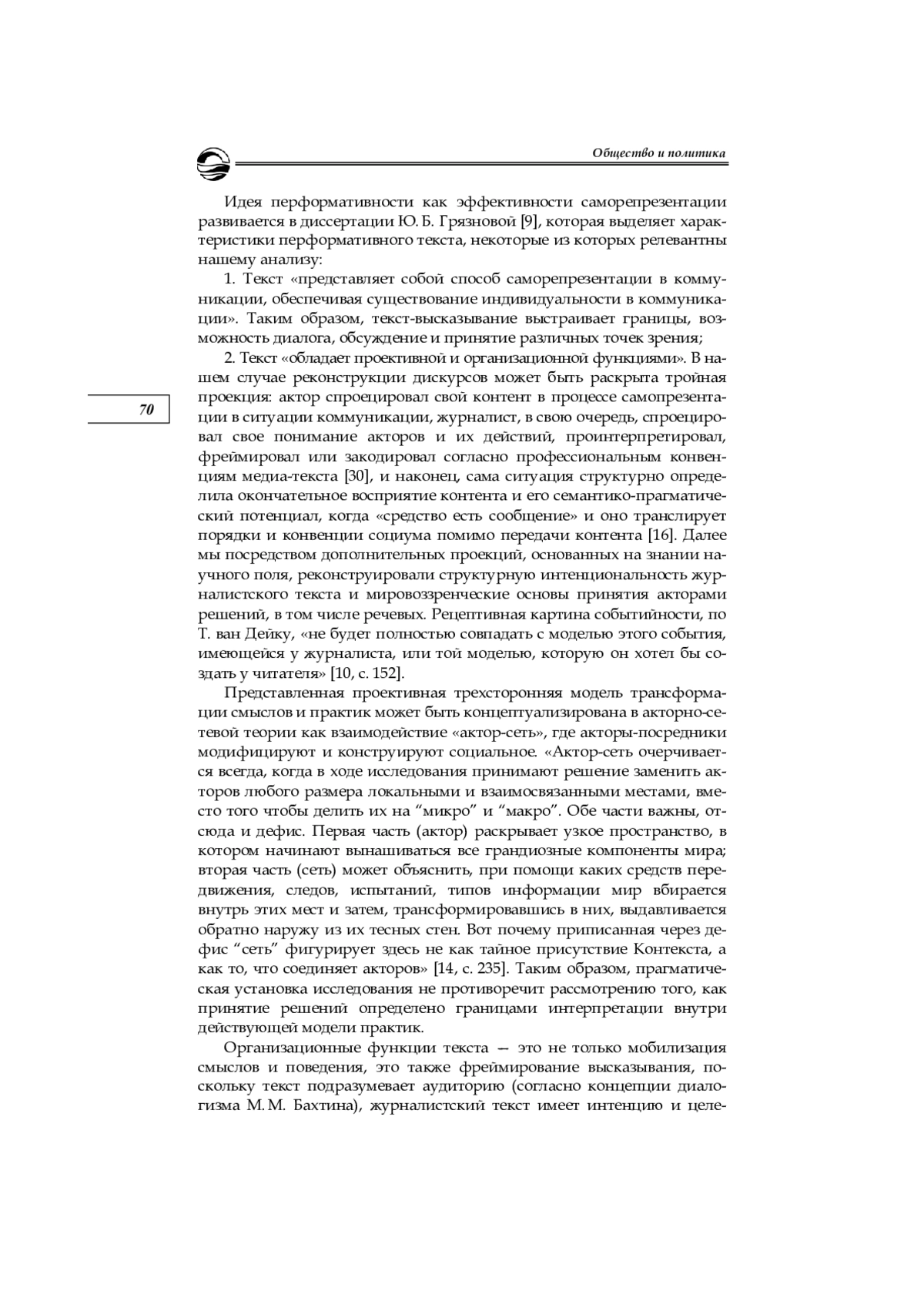 9. Грязнова Ю. Б. Перформативные тексты в методологии науки: автореф. дис. … канд. филос. наук. М., 1998.