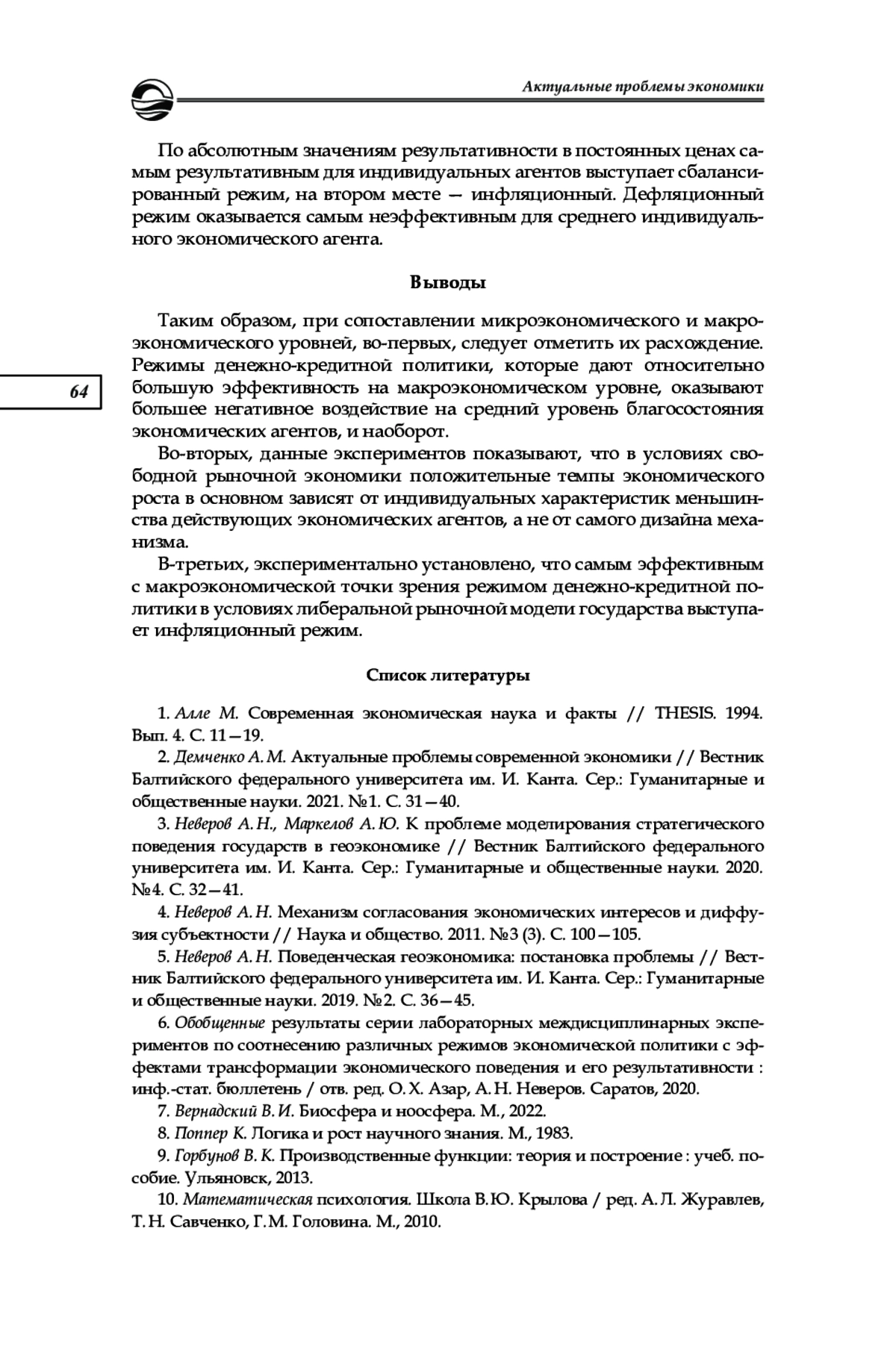 2. Демченко А. М. Актуальные проблемы современной экономики // Вестник Балтийского федерального университета им. И. Канта. Сер.: Гуманитарные и общественные науки. 2021. № 1. С. 31-40. EDN: YWHBQG