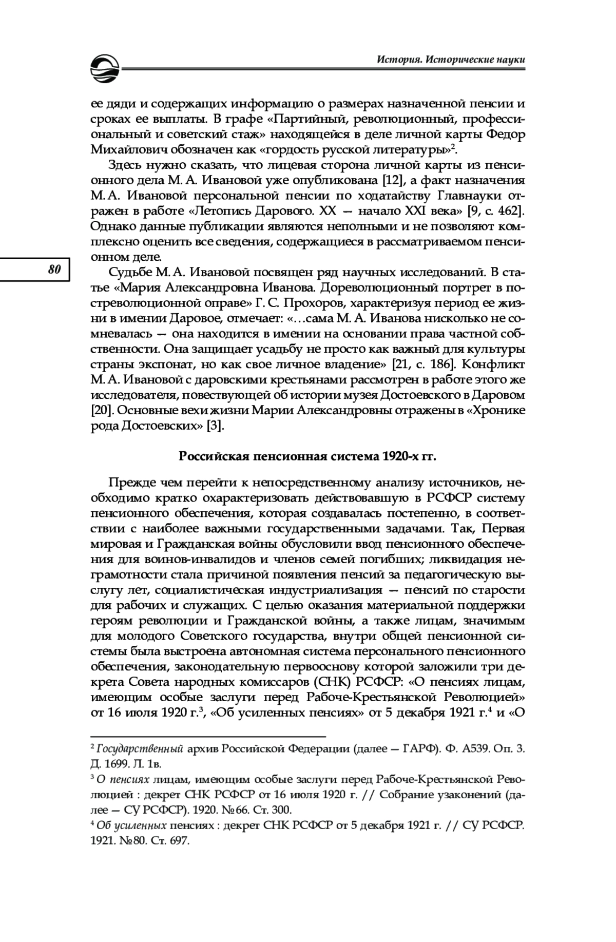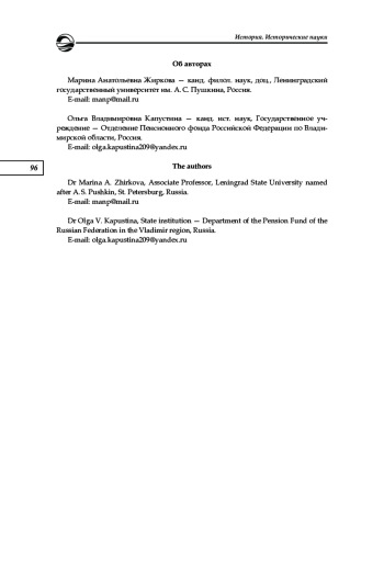 13. Капустина О. В. Особенности персонального пенсионирования родственников выдающихся граждан в довоенные годы // Вестник Санкт-Петербургского университета. История. 2021. Т. 66, вып. 2. С. 404-420. EDN: ZEEEDZ