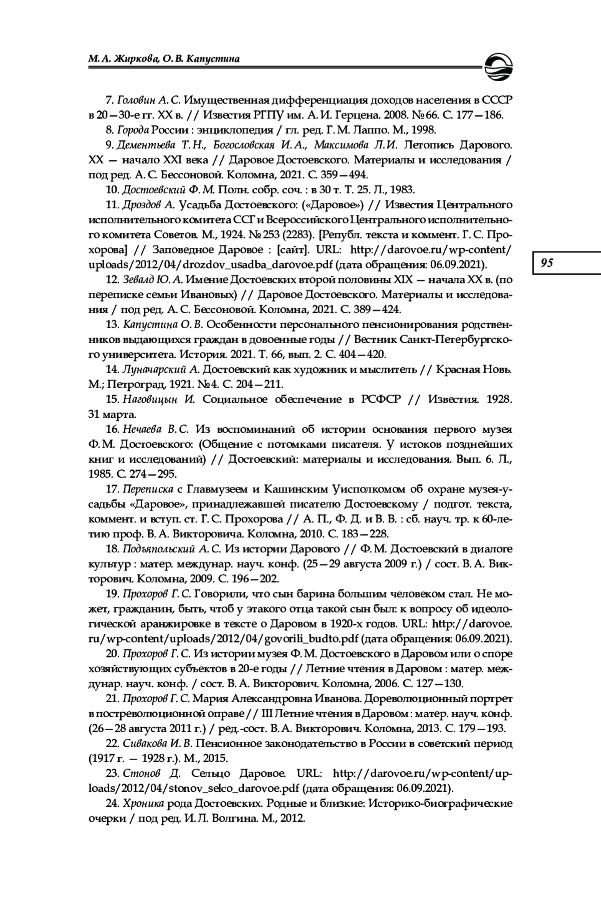 9. Дементьева Т. Н., Богословская И. А., Максимова Л. И. Летопись Дарового. ХХ - начало ХХI века // Даровое Достоевского. Материалы и исследования / под ред. А. С. Бессоновой. Коломна, 2021. С. 359-494.