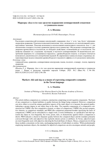 Цель настоящего исследования ‒ выявление и описание структурных и семантических стра-тегий репрезентации сравнения в тувинских текстах маркерами -биле и дег.