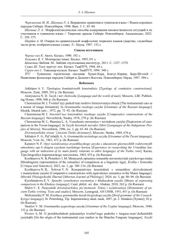 19. Черемисина М. И., Шамина Л. А. Выражение сравнения в тувинском языке // Языки коренных народов Сибири. Новосибирск, 1996. Вып. 3. С. 65-84.