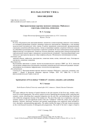 В статье обсуждается роль пространственных элементов в сюжетостроении эвенского эпоса-нимкан, его мотивной организации в ракурсе динамики эпического пространства. Обращение к теме вызвано недостаточной изученностью эпоса эвенов. В работе применены семиотический, функциональный, структурно-семантический виды анализа. Автор устанавливает влияние семантики эпических локусов на событийную реализацию последующего сюжетного развития. В тексте наблюдаются напластования мифологических и исторических элементов, богатая символика, переплетения элементов архаической горизонтальной модели мира и шаманских космологических воззрений. Структурообразующей осью эпического пространства предстает образ мифической реки. Обозначаются контаминации мотивов.