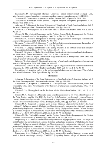 23. Chlenov M. The “Uelenski Language” and its Position Among Native Languages of the Chukchi Peninsula // Alaska Journal of Anthropology. 2006. Vol. 4. No. 1-2. Pp. 74-91.