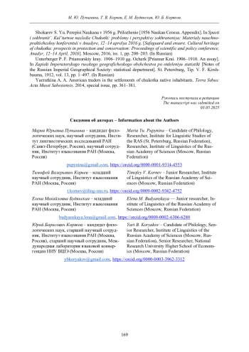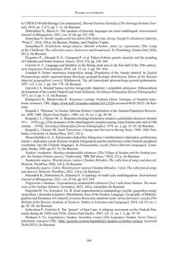 26. Golovko E. V. Language and Identities in the Bering strait area in the first half of the 20th century // Acta Linguistica Petropolitana. 2019. Vol. 15. Iss. 3. Pp. 391-424.