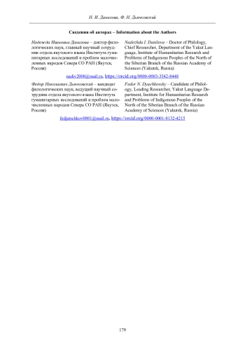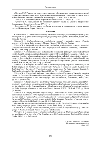 7. Ефремов Н. Н. Полипредикативные конструкции, выражающие отношения обусловленности // Функционально-семантические категории в якутском языке. Грамматическая и лексическая база. Якутск: ИГИиПМНС СО РАН, 2017. С. 63-86.