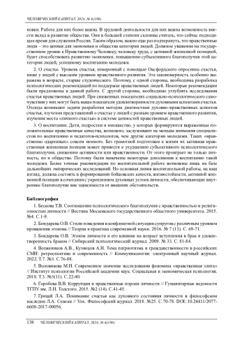 16. Ожиганова Г.В. Взаимосвязь духовно-нравственных качеств с альтруистическими установками и субъективным благополучием // Вестник Российского университета дружбы народов. Серия: Психология и педагогика. 2022. Т.19. №4. C. 744-764. DOI: 10.22363/2313-1683-2022-19-4-744-764