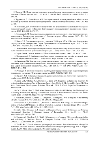 13. Лебедева Р.В. Характеристики нравственной сферы личности у молодых людей с различными типами жизненных ориентаций: автореф. дис. ... канд. психол. наук. С.-Пб. 2021. 25 с.