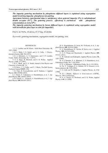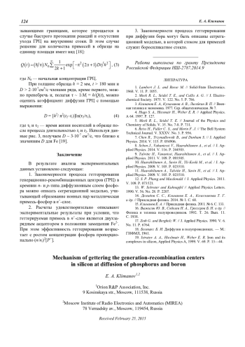 Климанов Е. А. О механизмах геттерирования генерационно-рекомбинационных центров в кремнии при диффузии фосфора и бора 121
