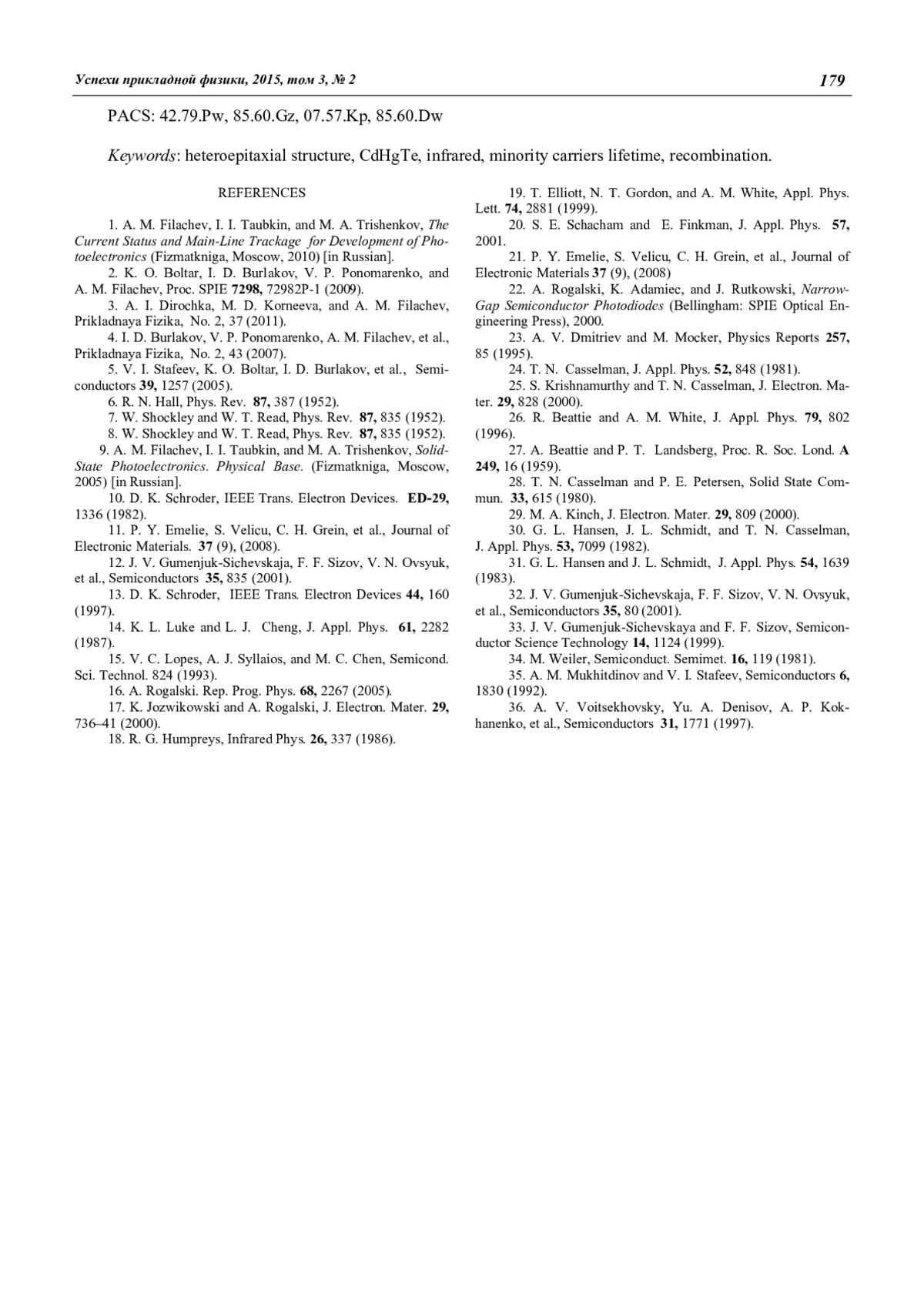 32. Gumenjuk-Sichevskaja J. V., Sizov F. F., Ovsyuk V. N., et al. // Semiconductors. 2001. V. 35. P. 800.