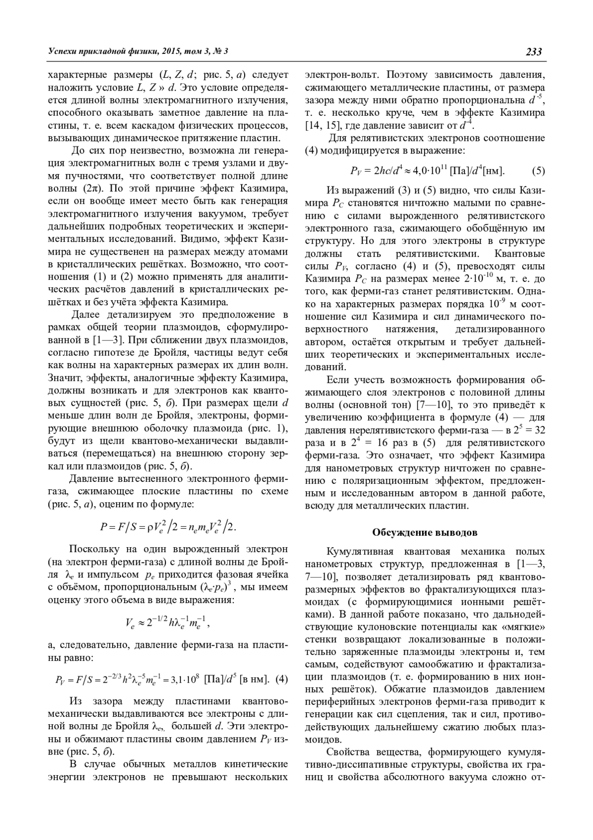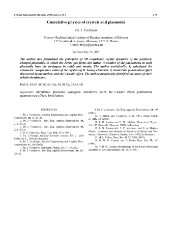 Сформулированы основы кумулятивной 3D-кристаллодинамики положительно заряженных плазмоидов, в которых локализованный ферми-газ формирует e-мембрану и ионные решётки. Ряд явлений в таких фрактализованных плазмоидах имеет аналоги в твердых телах и металлах. Аналитически: 1) рассчитаны коэффициенты объёмного сжатия кристаллов IV группы элементов; 2) исследованы поляризационный эффект, открытый автором, и эффект Казимира. Аналитически выявлены области их относительного доминирования.