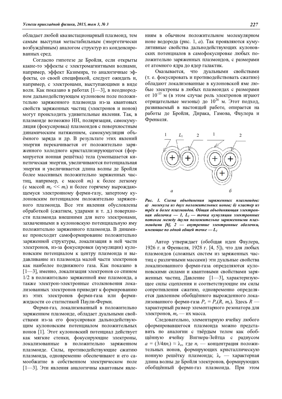 The author has formulated the principles of 3D cumulative crystal dynamics of the positively charged plasmoids, in which the Fermi gas forms ion lattice. A number of the phenomena in such plasmoids have the analogues in solids and metals. The author analytically: 1) calculated the volumetric compression ratios of the crystals of IV Group elements; 2) studied the polarization effect discovered by the author, and the Casimir effect. The author analytically identified the areas of their relative dominance.