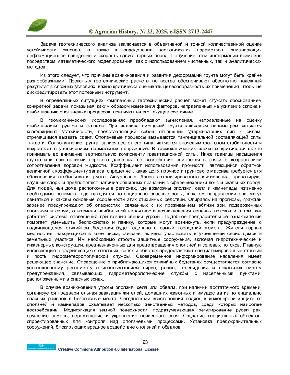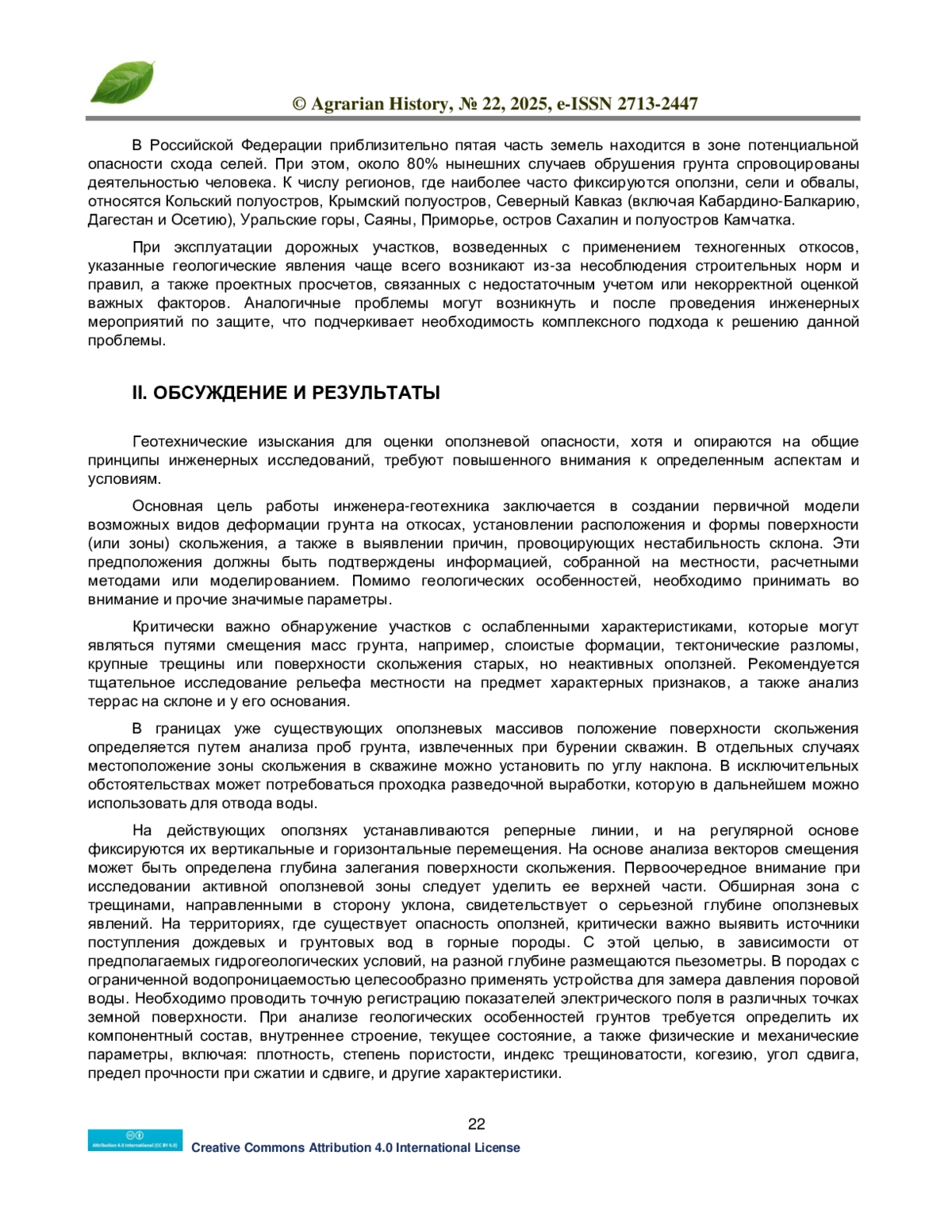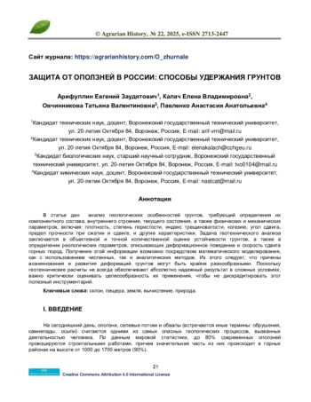 В статье дан анализ геологических особенностей грунтов, требующий определения их компонентного состава, внутреннего строения, текущего состояния, а также физических и механических параметров, включая: плотность, степень пористости, индекс трещиноватости, когезию, угол сдвига, предел прочности при сжатии и сдвиге, и другие характеристики. Задача геотехнического анализа заключается в объективной и точной количественной оценке устойчивости грунтов, а также в определении реологических параметров, описывающих деформационное поведение и скорость сдвига горных пород. Получение этой информации возможно посредством математического моделирования, как с использованием численных, так и аналитических методов. Из этого следует, что причины возникновения и развития деформаций грунтов могут быть крайне разнообразными. Поскольку геотехнические расчеты не всегда обеспечивают абсолютно надежный результат в сложных условиях, важно критически оценивать целесообразность их применения, чтобы не дискредитировать этот полезный инструментарий.