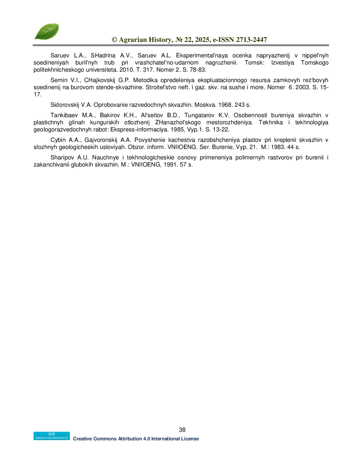 12. Танкибаев М.А., Бакиров К.Х., Альсеитов Б.Д., Тунгатаров К.В. Особенности бурения скважин в пластичных глинах кунгурских отложений Жанажольского месторождения. Техника и технология геологоразведочных работ: Экспресс-информация. 1985, Вып.1. С. 13-22.