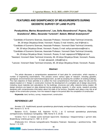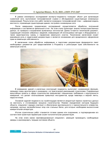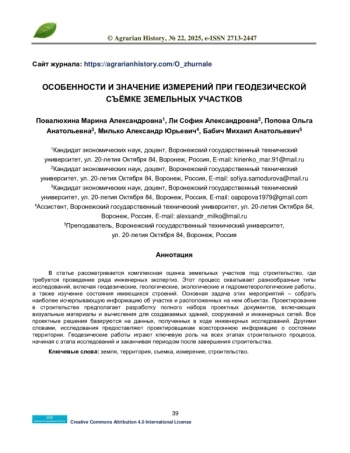 В статье рассматривается комплексная оценка земельных участков под строительство, где требуется проведение ряда инженерных экспертиз. Этот процесс охватывает разнообразные типы исследований, включая геодезические, геологические, экологические и гидрометеорологические работы, а также изучение состояния имеющихся строений. Основная задача этих мероприятий – собрать наиболее исчерпывающую информацию об участке и расположенных на нем объектах. Проектирование в строительстве предполагает разработку полного набора проектных документов, включающих визуальные материалы и вычисления для создаваемых зданий, сооружений и инженерных сетей. Все проектные решения базируются на данных, полученных в ходе инженерных исследований. Другими словами, исследования предоставляют проектировщикам всестороннюю информацию о состоянии территории. Геодезические работы играют ключевую роль на всех этапах строительного процесса, начиная с этапа исследований и заканчивая периодом после завершения строительства.