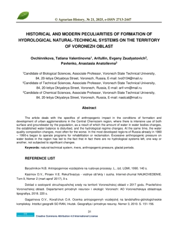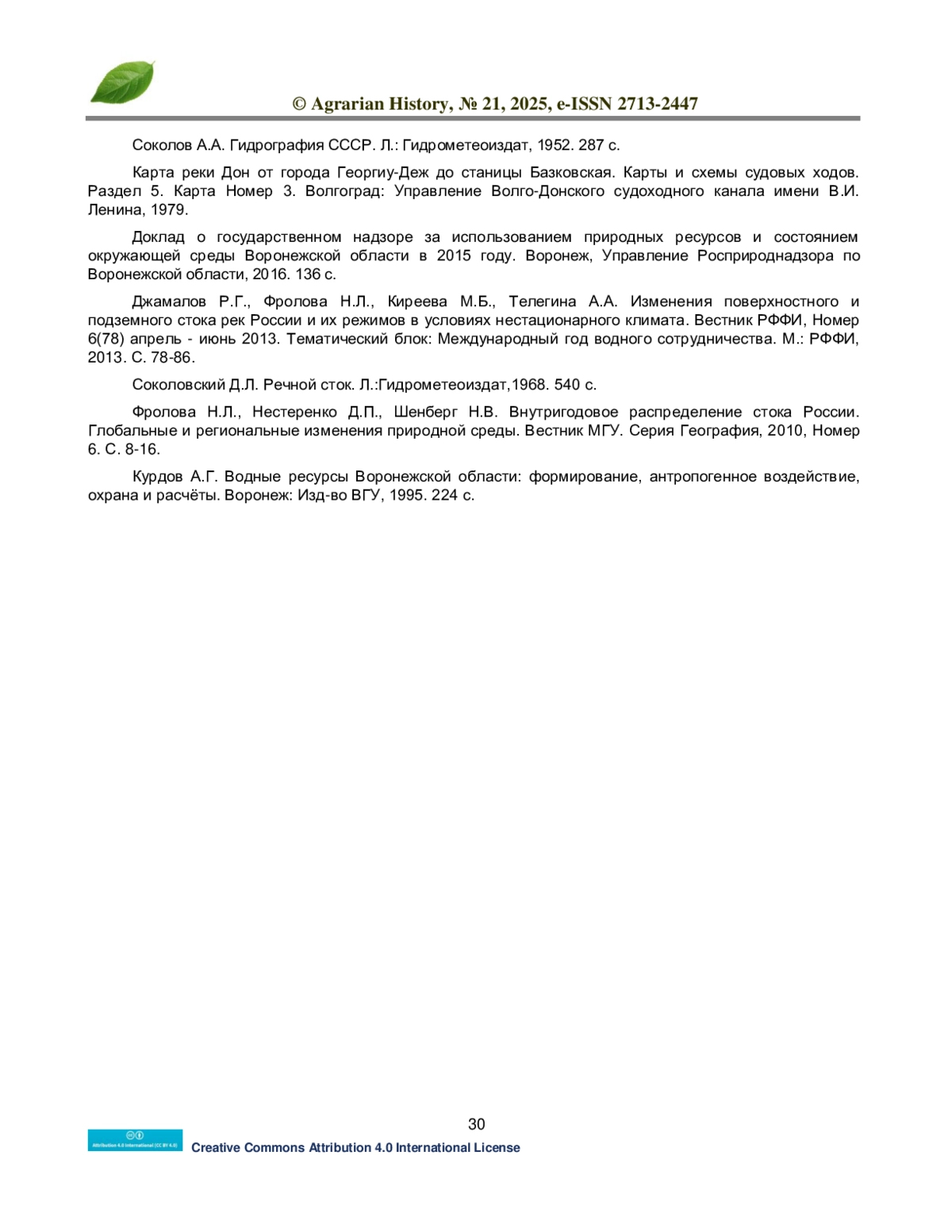 19. Курдов А.Г. Водные ресурсы Воронежской области: формирование, антропогенное воздействие, охрана и расчёты. Воронеж: Изд-во ВГУ, 1995. 224 с.