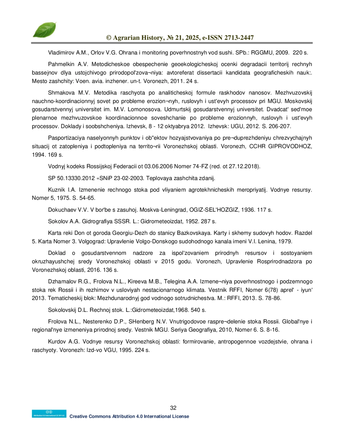 11. Кузник И.А. Изменение речного стока под влиянием агротехнических мероприятий. Водные ресурсы. Номер 5, 1975. С. 54-65.