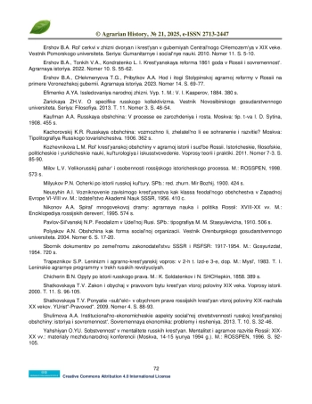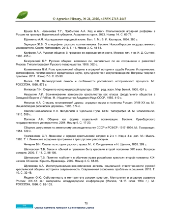 10. Ершов Б.А., Тонких В.А., Кондратенко Л. И. Крестьянская реформа 1861 года в России и современность. Аграрная история. 2022. Номер 10. С. 55-62.