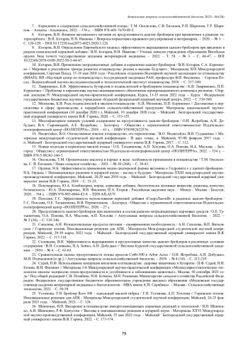 16. Околелова, Т.М. Органические кислоты в кормах и воде: особенности применения в птицеводстве / Т.М. Околелова, С. В. Енгашев // Наше сельское хозяйство. - 2021. - № 20 (268). - С. 38-43. EDN: NTBBBS