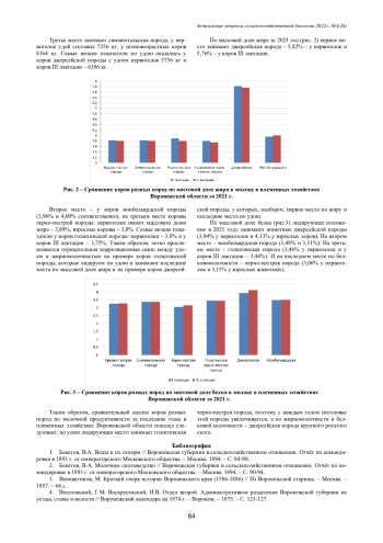 Основными разводимыми породами крупного рогатого скота в Воронежской области являются: краснопестрая с внутрипородным «Воронежским» типом, голштинская черно-пестрой масти и джерсейская. Животные остальных трех пород (черно-пестрая, симментальская и монбельярдская) имеют незначительное поголовье в хозяйствах области. В статье проводится сравнительный анализ молочной продуктивности коров разных пород в племенных хозяйствах Воронежской области.