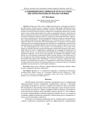 Материалы и методы. Методической основой исследования являются систематизация результатов анализа научной литературы, практических разработок и личный опыт автора, что позволило сформировать комплексную методологию оценки эффективности онлайн-курсов.