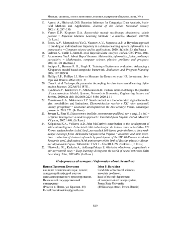 12. Кожомбердиева Г. И., Бураков Д. П. Об использовании формулы Байеса в задачах оценивания качества // Международная конференция по мягким вычислениям и измерениям. 2017. Т. 1. С. 31-34. EDN: ZDFTIJ