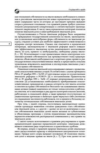 4. Попов Д. И. Правовой режим земельных долей в праве общей собственности на земельные участки из земель сельскохозяйственного назначения в Российской Федерации: автореф. дис. … канд. юр. наук. Саратов, 2004. EDN: NHWBQF