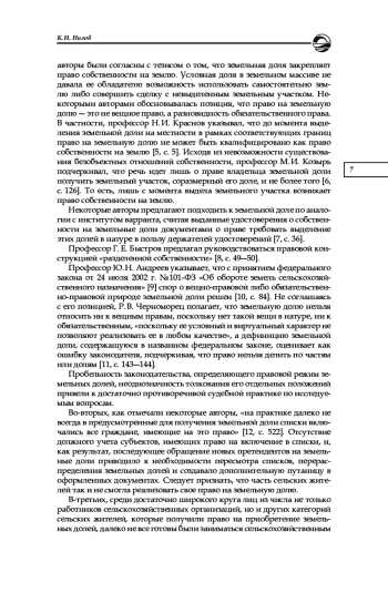 6. Козырь М. И. Юридическая природа права на земельную долю // Аграрное и земельное право. 2009. № 1. С. 125-132. EDN: KXSQYX