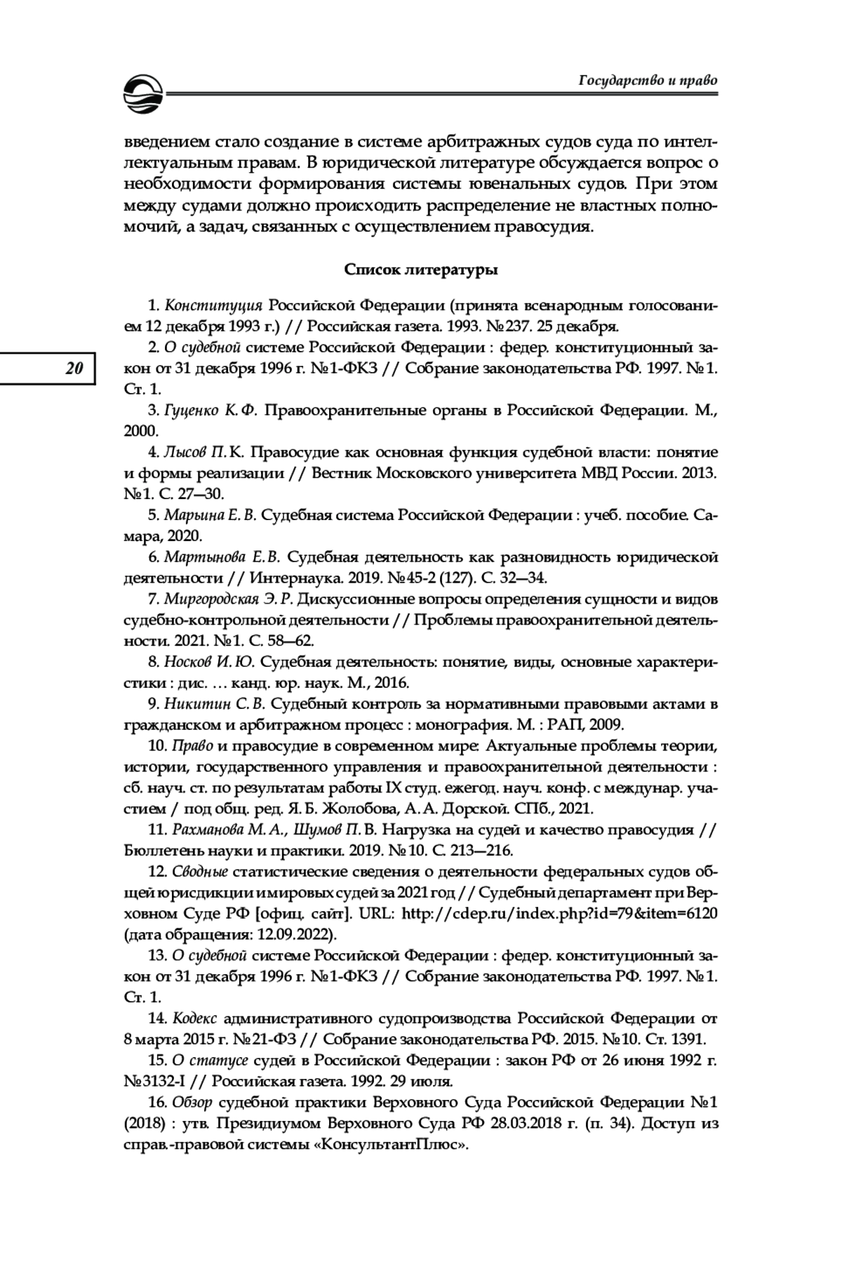 5. Марьина Е. В. Судебная система Российской Федерации: учеб. пособие. Самара, 2020. EDN: GYDGTW