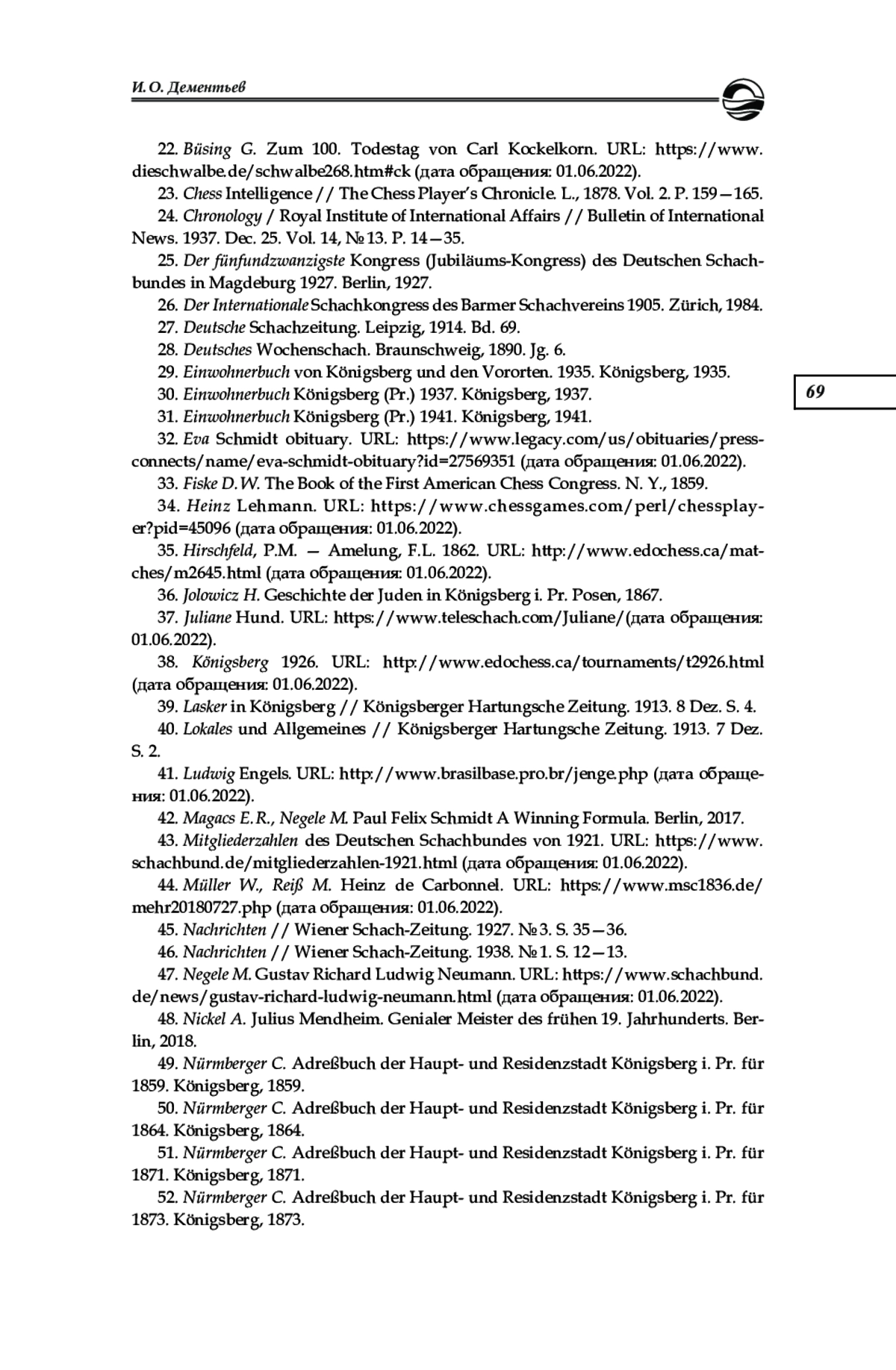 22. Büsing G. Zum 100. Todestag von Carl Kockelkorn. URL: https://www.dieschwalbe.de/schwalbe268.htm#ck (дата обращения: 01.06.2022).