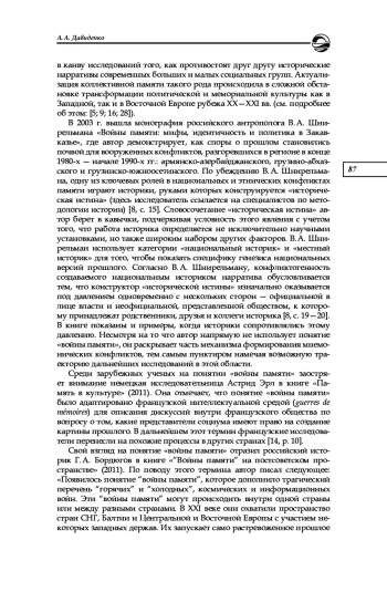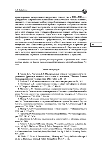 1. Аникин Д. А., Линченко А. А. Мемориальные войны в условиях восточноевропейского фронтира: в поисках методологии исследования // Вестник Томского государственного университета. 2021. № 466. С. 55-63. EDN: TTZDTI