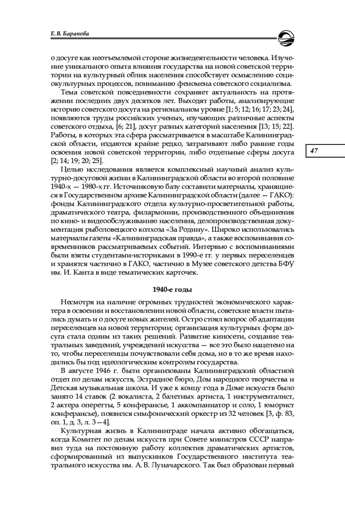 2. Баранова Е. В. Формирование образа Калининграда 1940-х годов на примере анализа фотографий “Калининградской правды” // Калининградские архивы: материалы и исследования: сб. ст. Калининград, 2018. Вып. 15. С. 128-136. EDN: YOVRGX