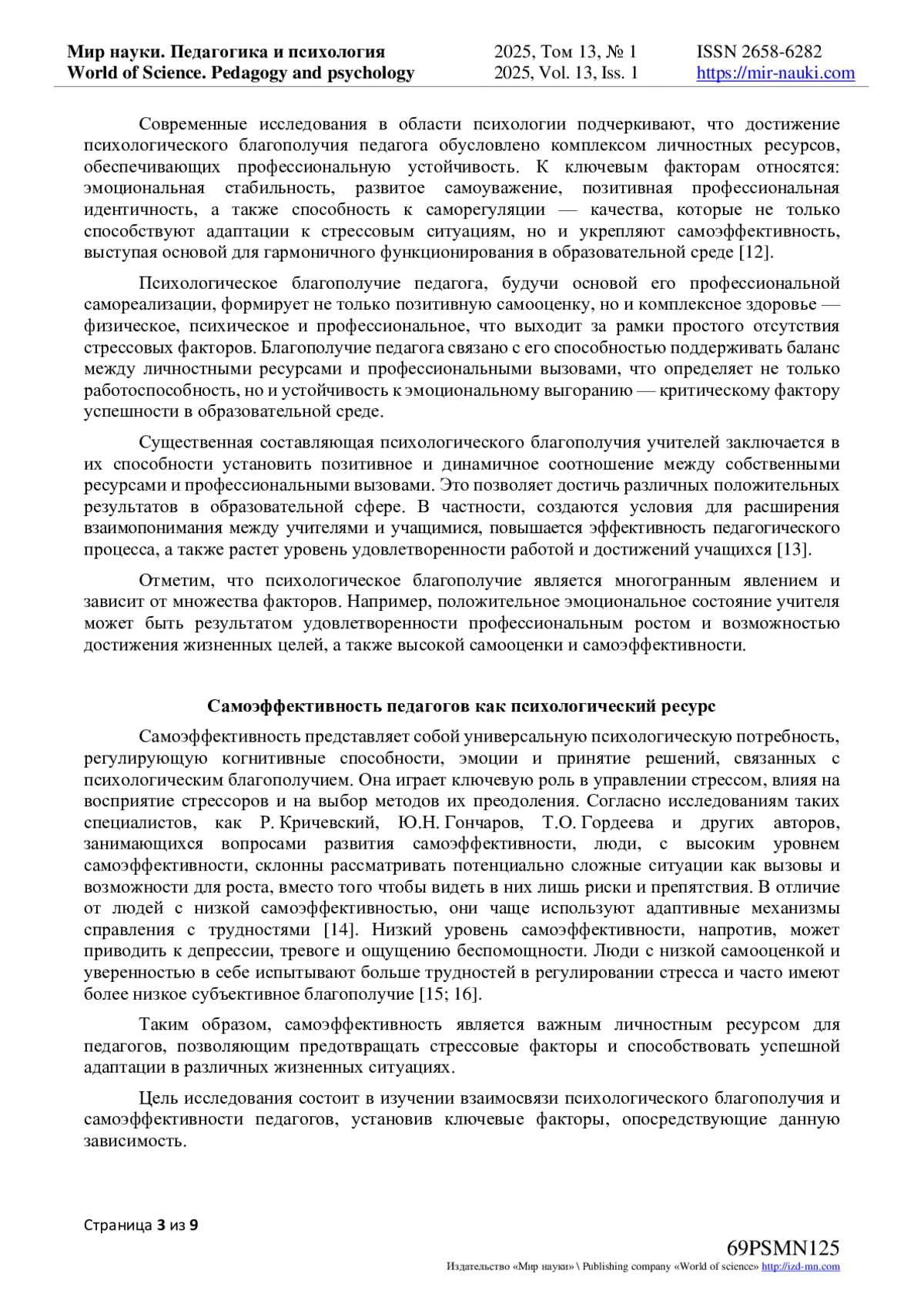 14. Sabouripour F., Roslan S., Ghiami Z. and Memon M.A. Mediating Role of Self-Efficacy in the Relationship Between Optimism, Psychological Well-Being, and Resilience Among Iranian Students // Front. Psychol. - 14 June 2021. - Volume 12. - Article 675645. -. DOI: 10.3389/fpsyg.2021.675645 EDN: CNINLA