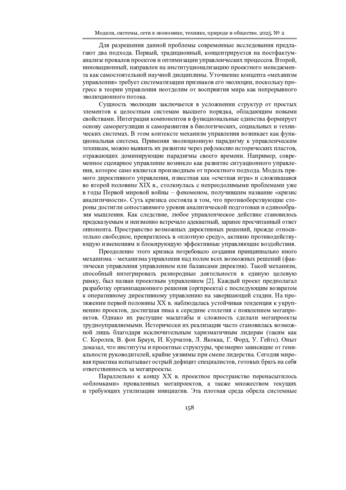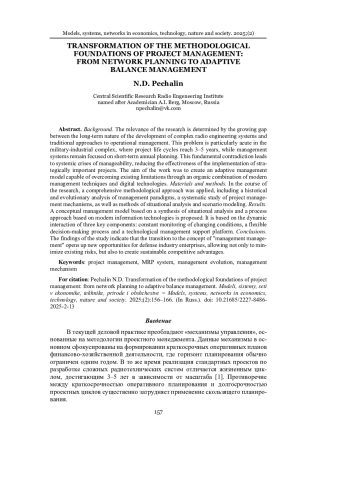 Материалы и методы. В ходе исследования применялся комплексный методологический подход, включающий историко-эволюционный анализ управленческих парадигм, системное изучение механизмов проектного управления, а также методы ситуационного анализа и сценарного моделирования.