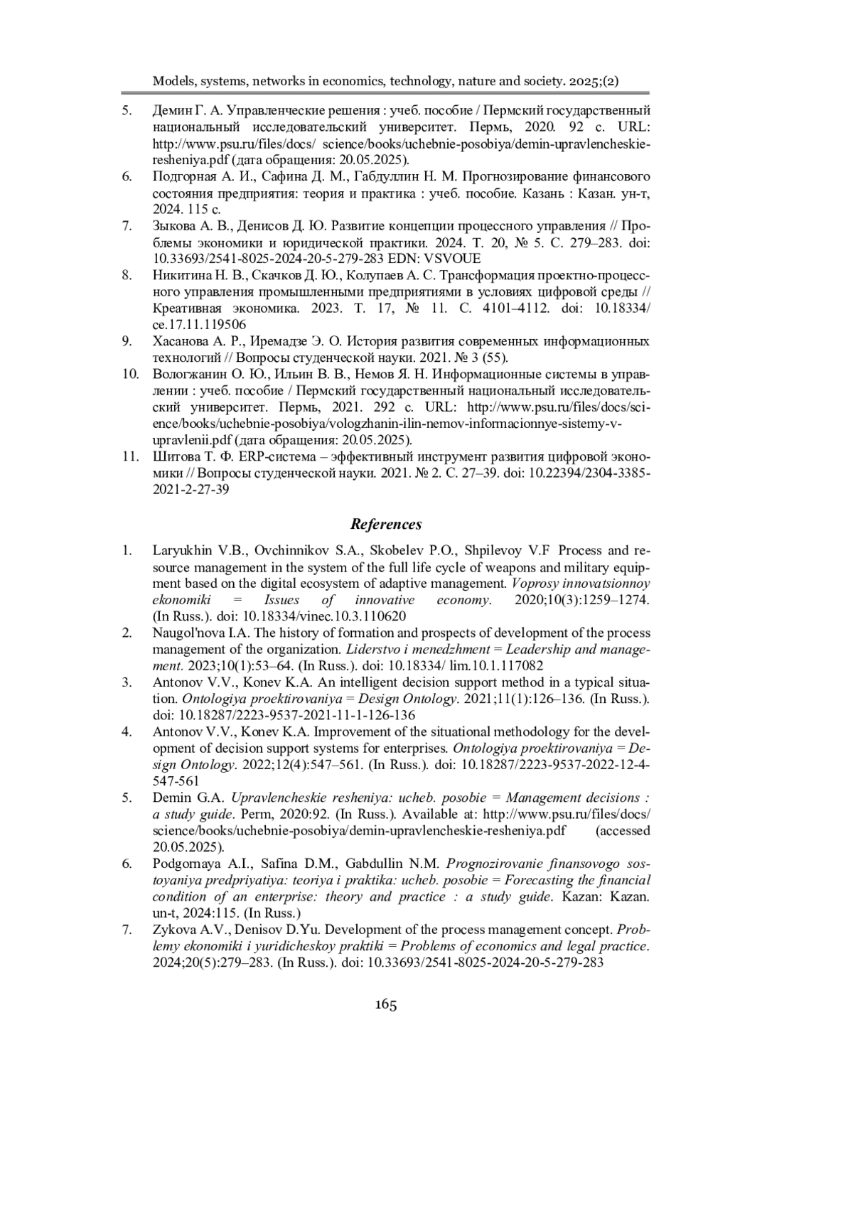 10. Вологжанин О. Ю., Ильин В. В., Немов Я. Н. Информационные системы в управлении: учеб. пособие / Пермский государственный национальный исследовательский университет. Пермь, 2021. 292 с. URL: http://www.psu.ru/files/docs/science/books/uchebnie-posobiya/vologzhanin-ilin-nemov-informacionnye-sistemy-v-upravlenii.pdf (дата обращения: 20.05.2025).