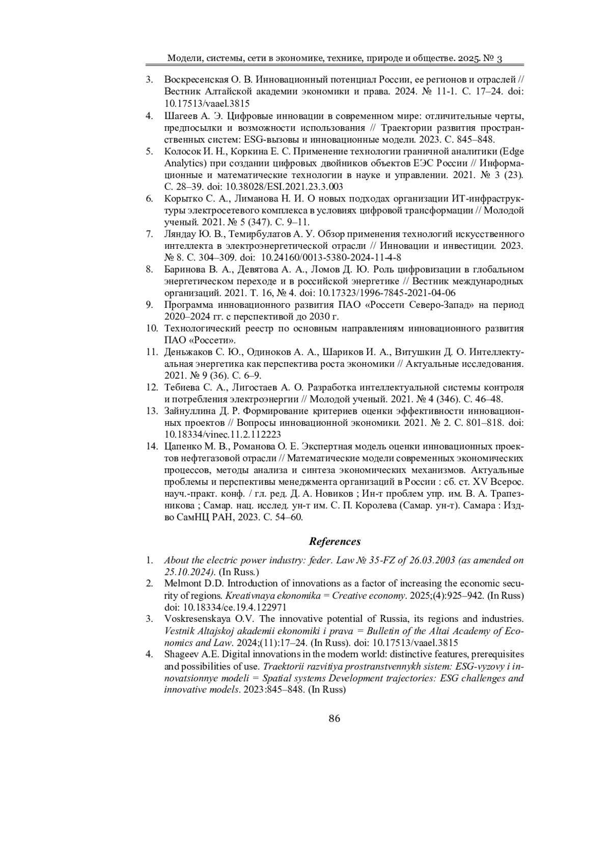 3. Воскресенская О. В. Инновационный потенциал России, ее регионов и отраслей // Вестник Алтайской академии экономики и права. 2024. № 11-1. С. 17-24. DOI: 10.17513/vaael.3815 EDN: YYXLUI