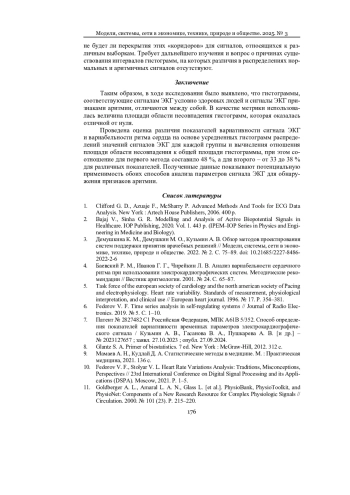 10. Fedorov V. F., Stolyar V. L. Heart Rate Variations Analysis: Traditions, Misconceptions, Perspectives // 23rd International Conference on Digital Signal Processing and its Applications (DSPA). Moscow, 2021. Р. 1-5. EDN: JJSTSF