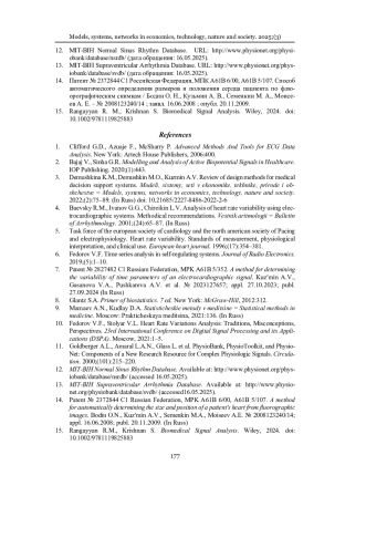 11. Goldberger A. L., Amaral L. A. N., Glass L. [et al.]. PhysioBank, PhysioToolkit, and PhysioNet: Components of a New Research Resource for Complex Physiologic Signals // Circulation. 2000. № 101 (23). Р. 215-220.