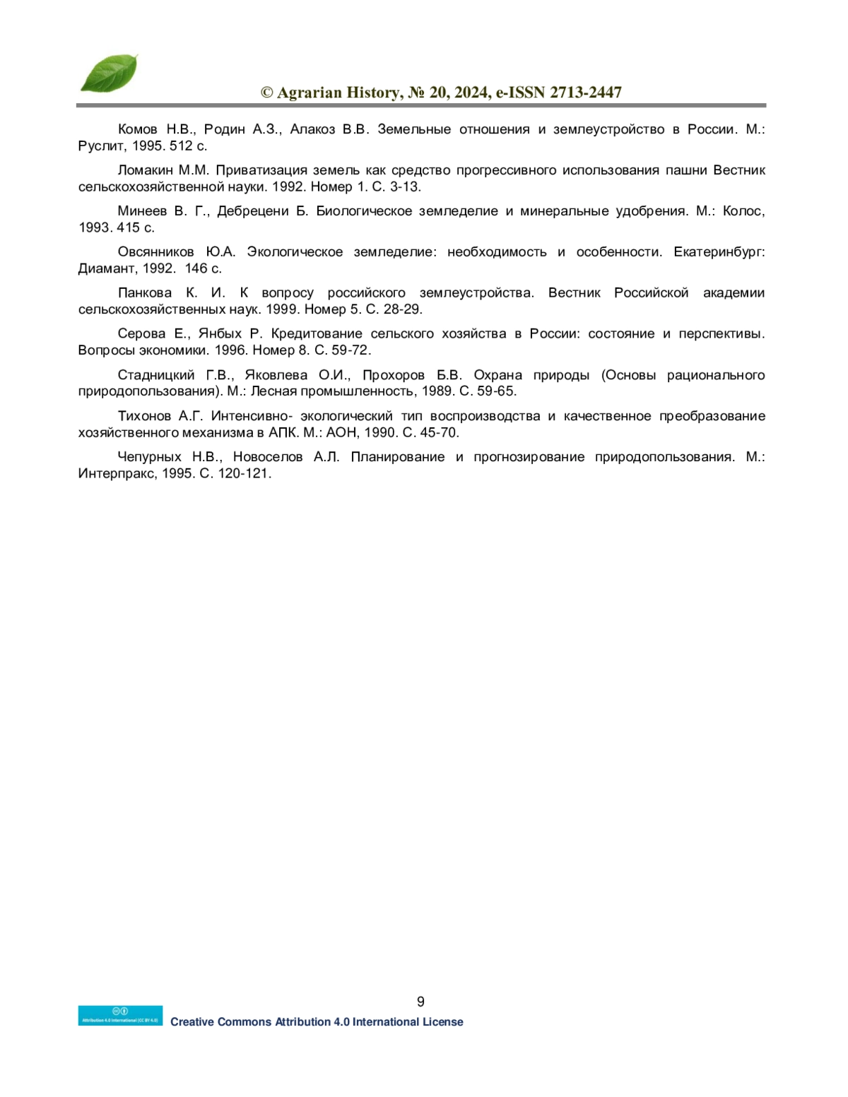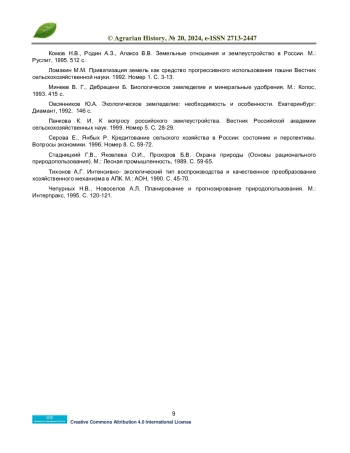 9. Комов Н.В., Родин А.З., Алакоз В.В. Земельные отношения и землеустройство в России. М.: Руслит, 1995. 512 с. EDN: FBNXEC