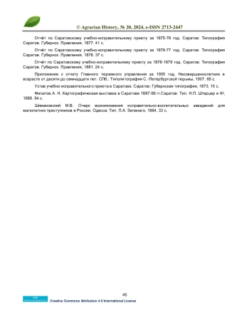 21. Шимановский М.В. Очерк возникновения исправительно-воспитательных заведений для малолетних преступников в России. Одесса: Тип. П.А. Зеленаго, 1884. 33 с.