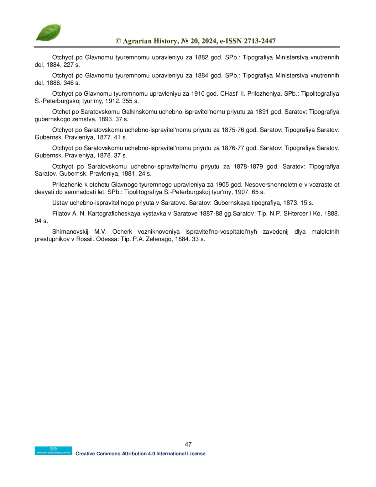 17. Отчёт по Саратовскому учебно-исправительному приюту за 1878-1879 год. Саратов: Типография Саратов. Губернск. Правления, 1881. 24 с.