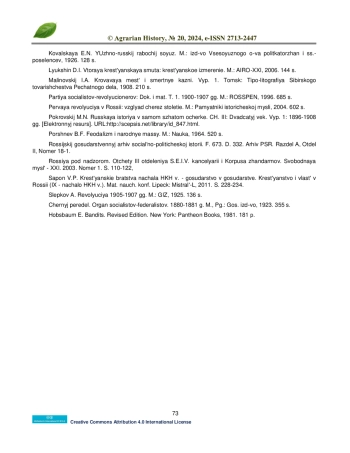 2. Анфимов А.М. Экономическое положение и классовая борьба крестьян Европейской России. 1881-1904 гг. М.: Наука, 1984. 232 с.