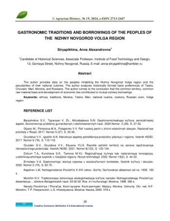 Статья: ГАСТРОНОМИЧЕСКИЕ ТРАДИЦИИ И ЗАИМСТВОВАНИЯ НАРОДОВ НИЖЕГОРОДСКОГО ПОВОЛЖЬЯ (2024)
