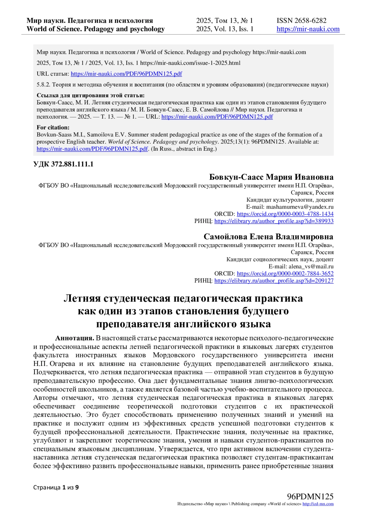 - ИЗДАТЕЛЬСТВО МИР НАУКИ