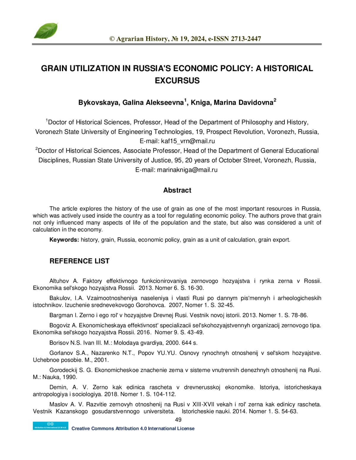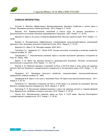 3. Баргман И. Зерно и его роль в хозяйстве Древней Руси. Вестник новой истории. 2013. Номер 1. С. 78-86.
